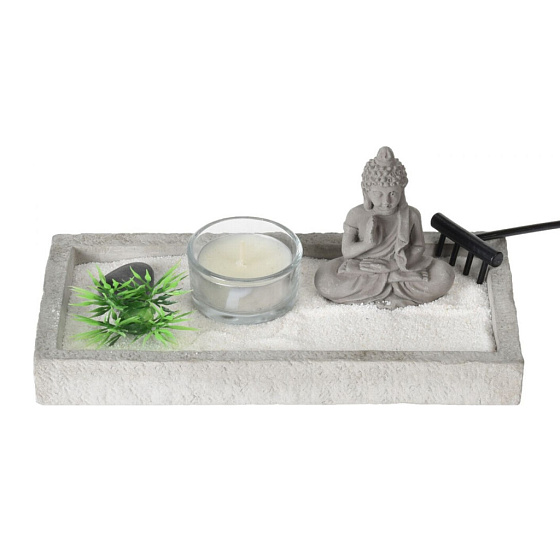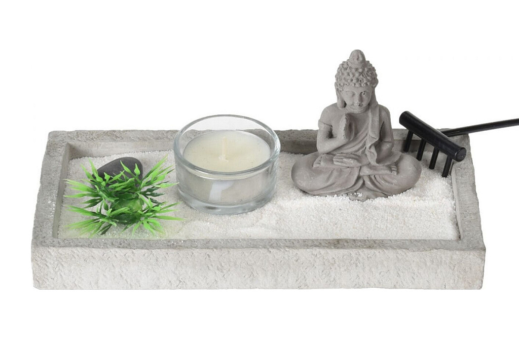 Relaxační ZEN dekorace pro domácnost Tato ZEN zahrada je způsob jak se zbavit stresu, uzdravíme tělo, budeme se cítit lépe fyzicky i duševně. Je to skvělá pomůcka pro relaxaci ale také krásná dekorace. Písek a hrabičky nám pomohou uklidnit se a relaxovat. Sada obsahuje všechny potřebné prvky pro úplnou relaxaci. Osvětlením aromatické svíčky v ZEN zahradě jsme schopni dosáhnout ještě hlubšího uvolnění.Více