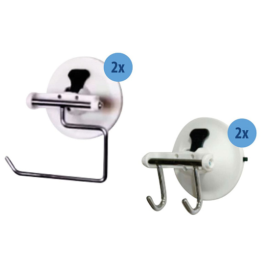 Hanging things up without damaging walls and surfaces is now extra easy with the suction cup hooks from Get a Hook. This set consists of two suction cups and two toilet roll holders with suction cups. Ideal for use at home to hang things quickly and easily. Use the brackets in the kitchen, bathroom, hallway and office. As long as the surface is clean and smooth, it can be used anywhere.