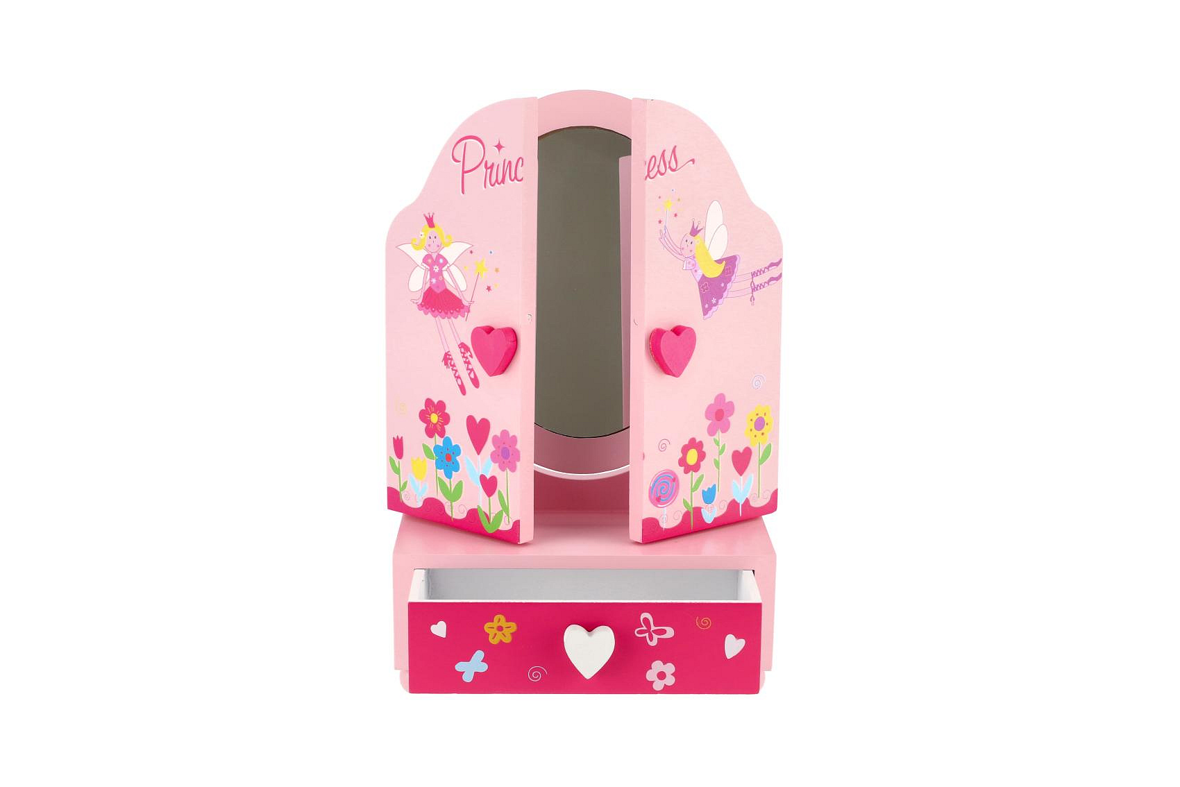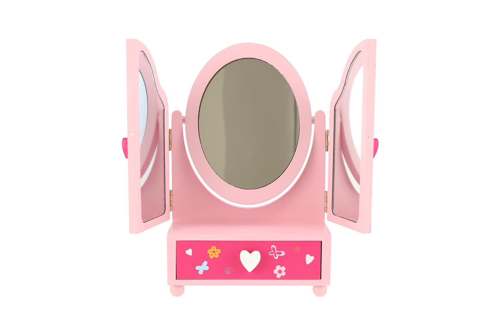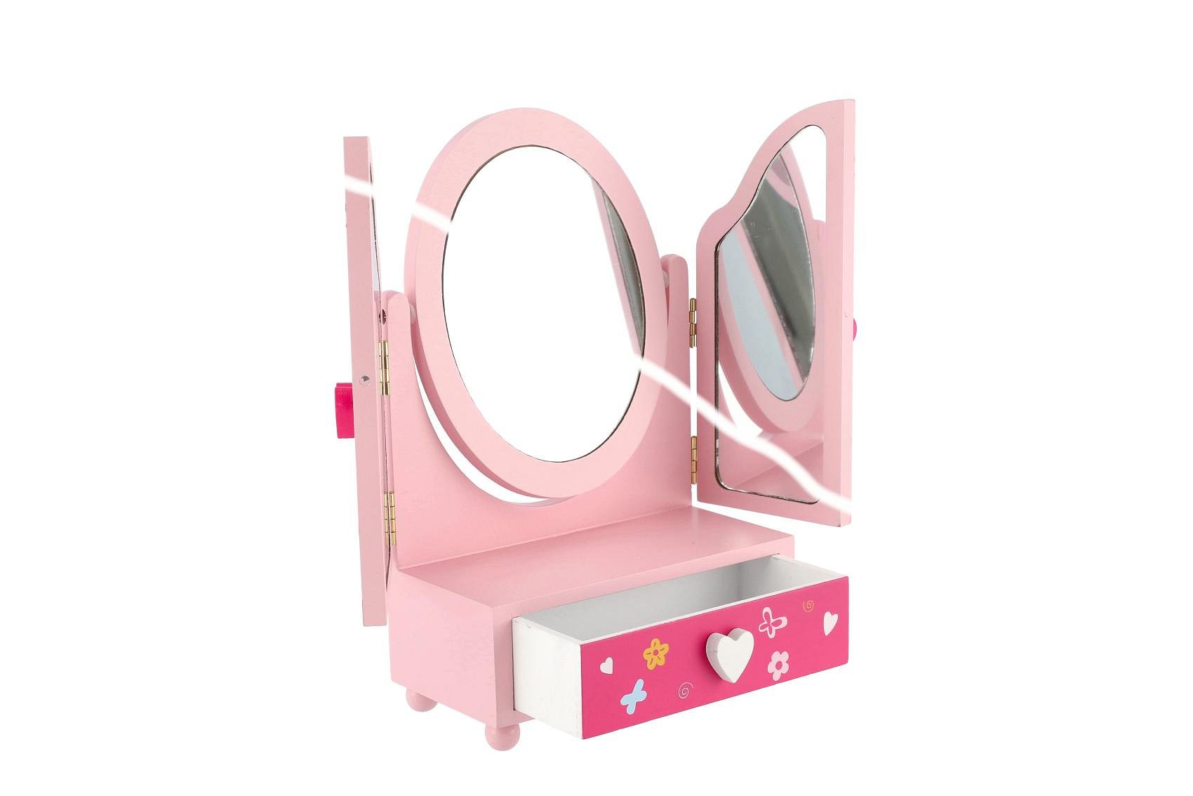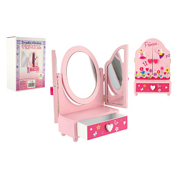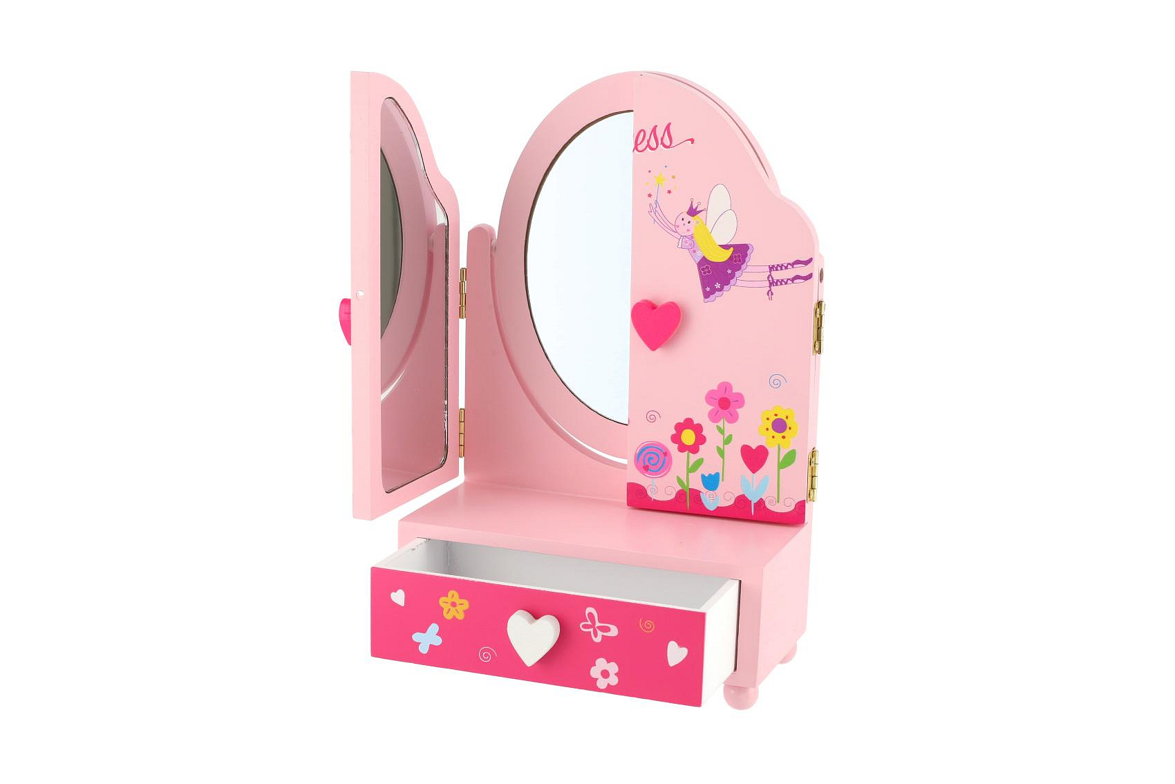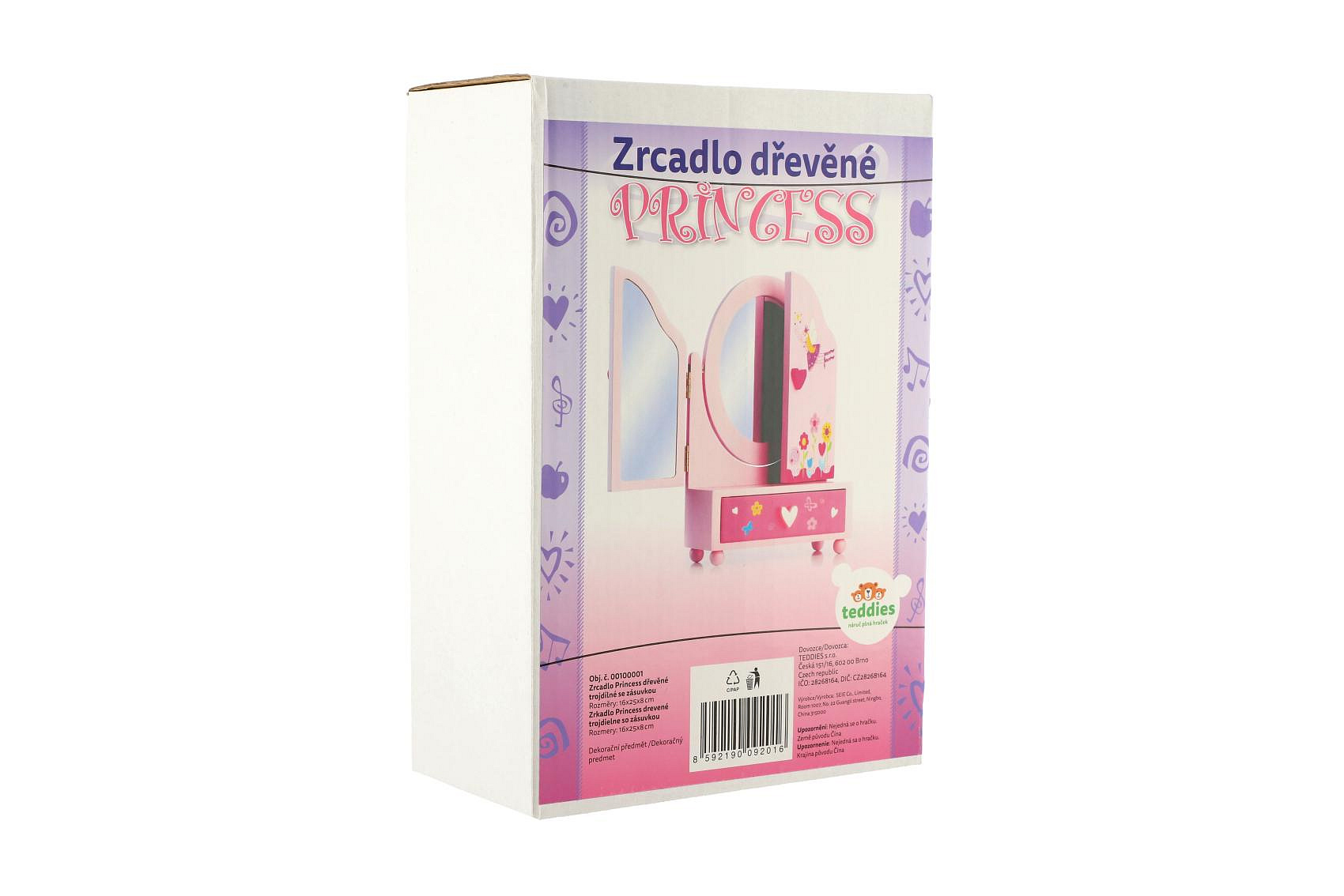 Zrcadlo šperkovnice Princess 3-dílné zásuvka dřevo 16x25x8cm v krabici