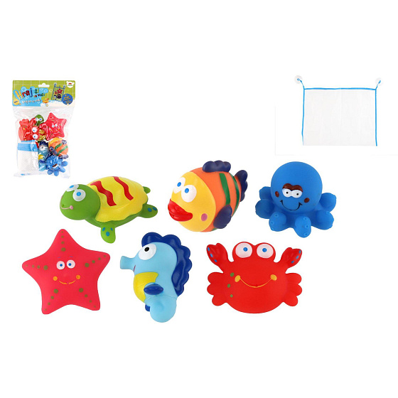 Zvířátka do vany gumová 6ks se síťkou v sáčku 18x28x5cm 12m+