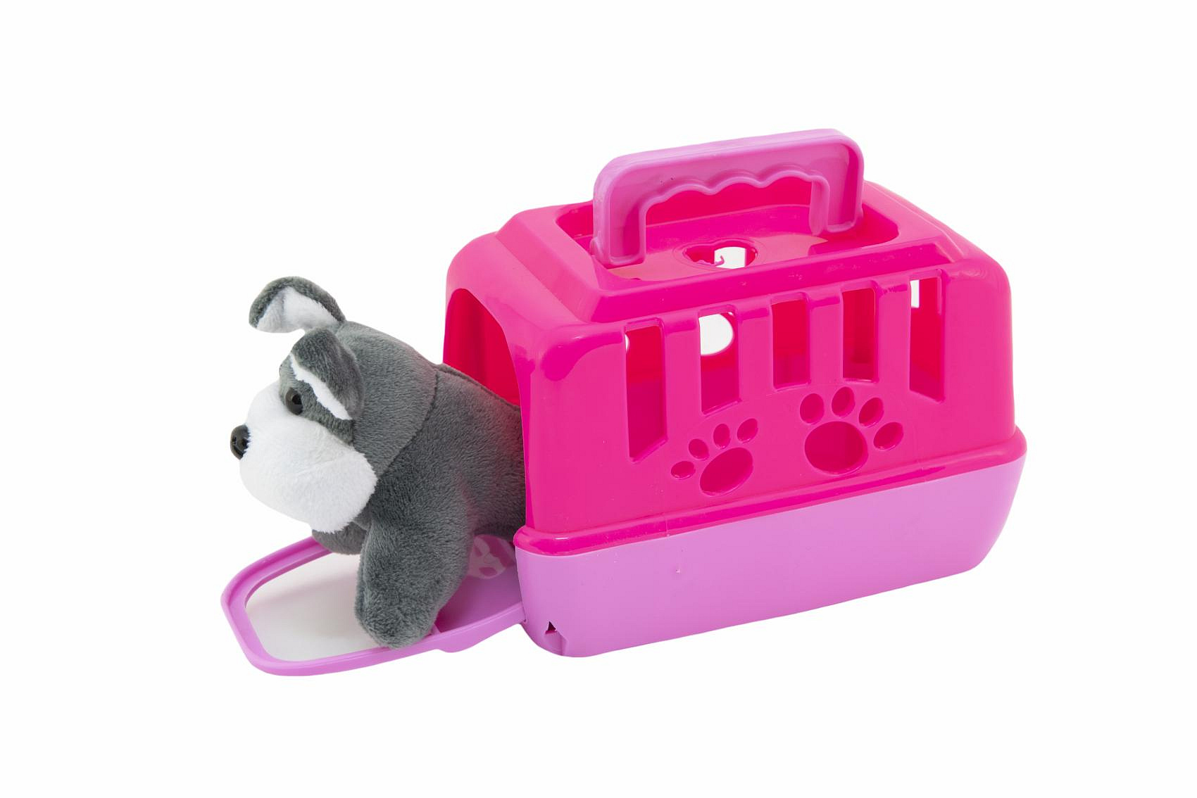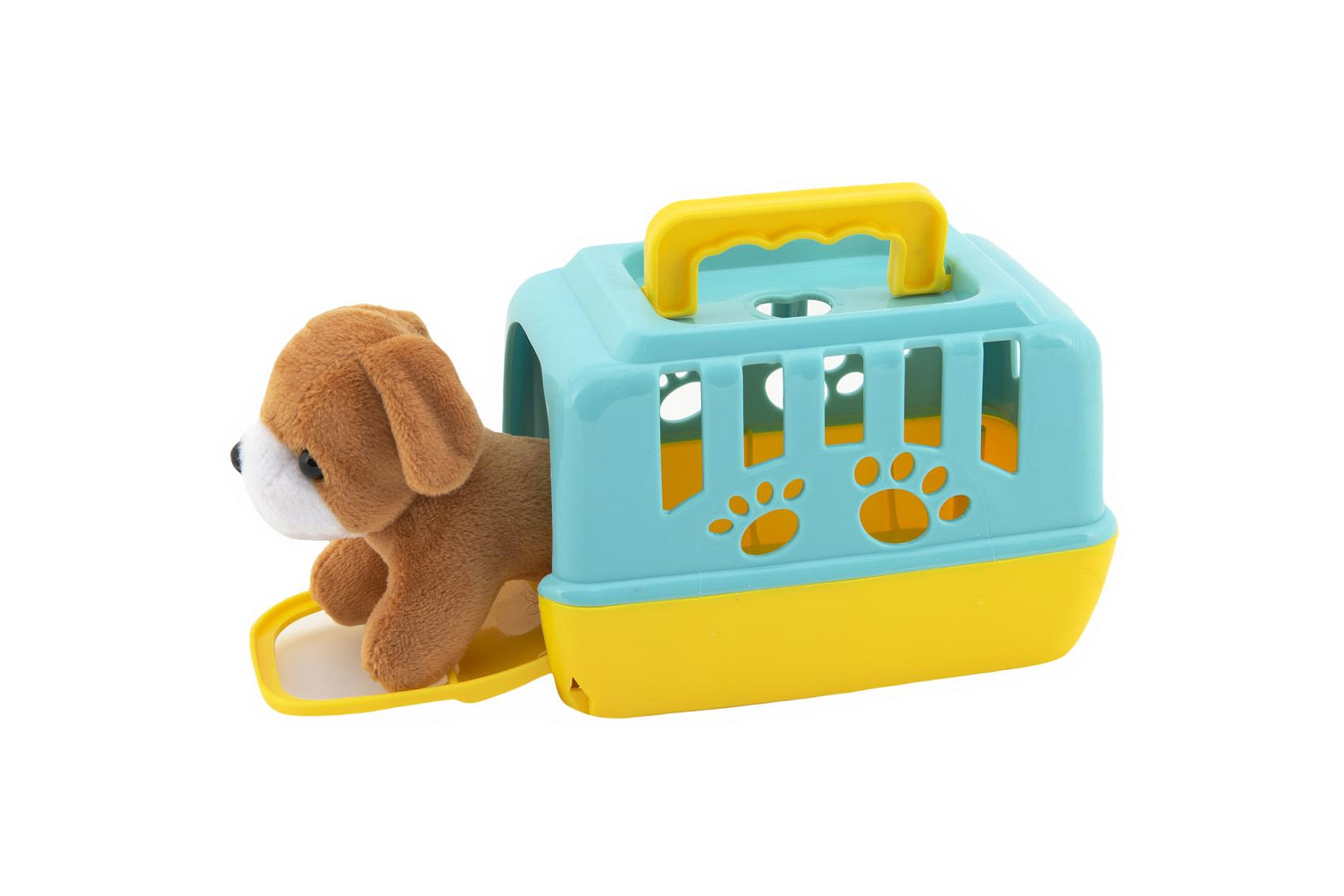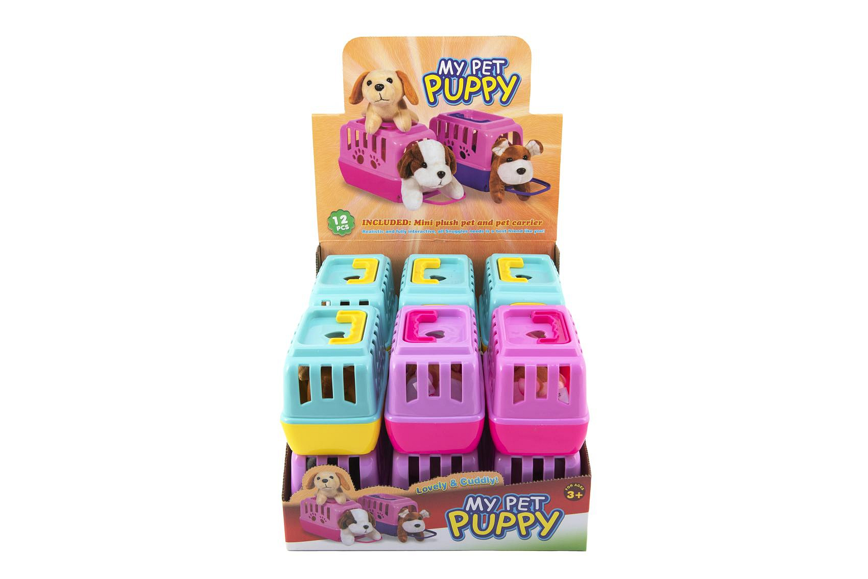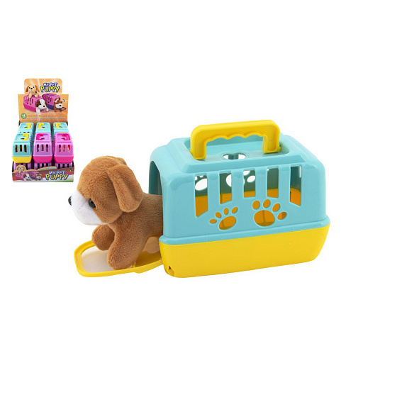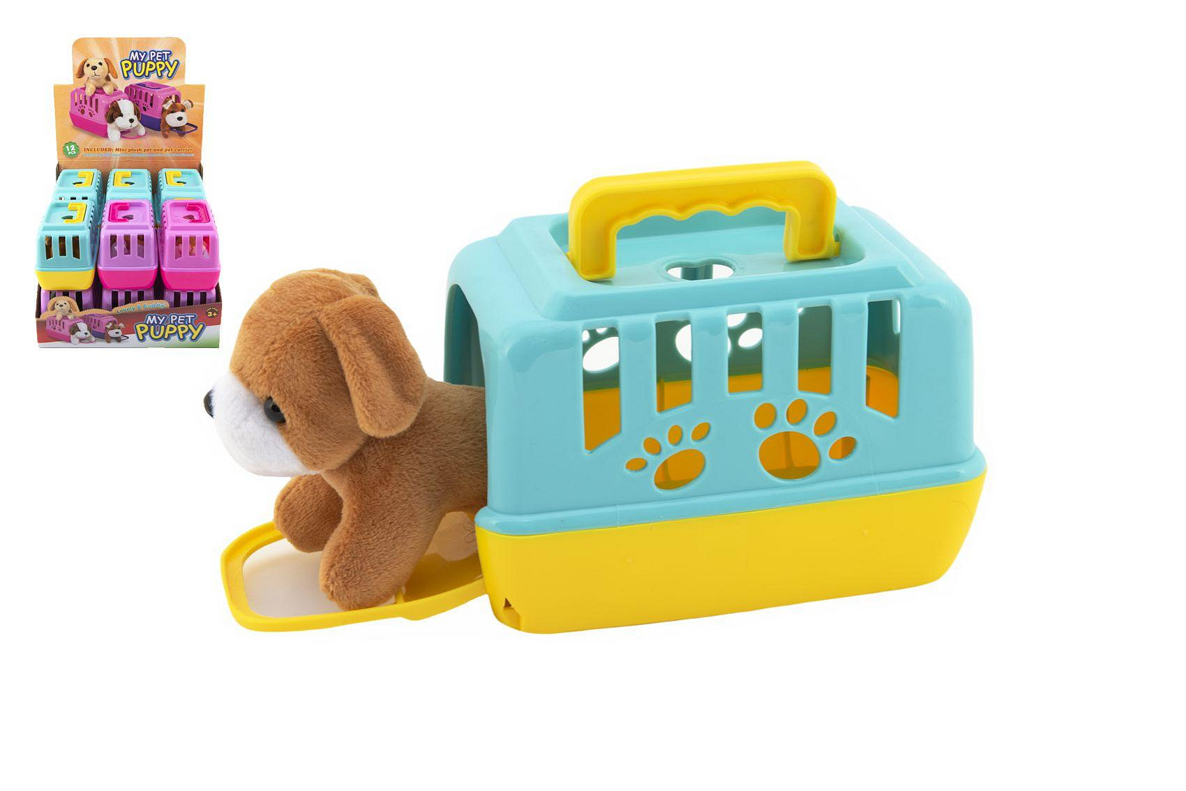 Zvířátko pejsek plyš v přenosném boxu plast 15cm mix barev 12ks v boxu